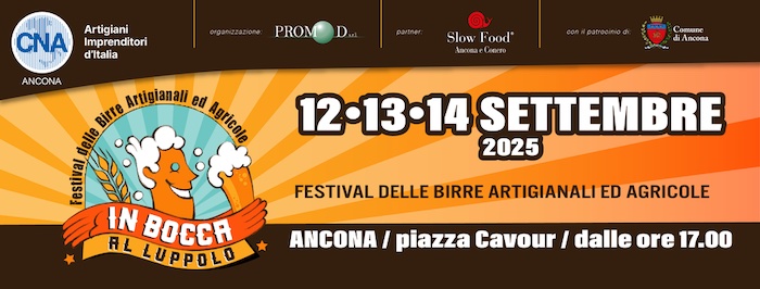 ANCONA – Anche quest’anno torna In Bocca al Luppolo, Festival delle Birre Artigianali e Agricole organizzato da Cna Ancona insieme a Slow Food e promosso con il patrocinio del Comune di Ancona. L’Organizzazione è di Promo D Eventi e Mercatini.