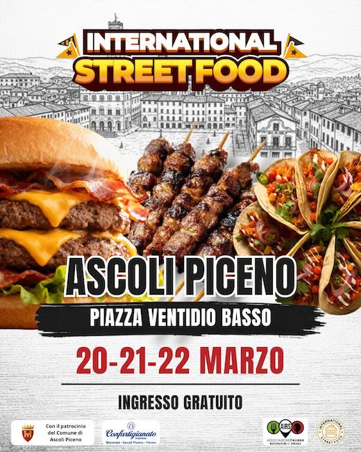 Durante la tappa di Ascoli Piceno il pubblico potrà intraprendere un vero viaggio tra i sapori dello street food internazionale. Tra le specialità presenti: le bombette pugliesi, gli hamburger di Chianina e di Scottona, le olive ascolane artigianali tagliate al coltello, il kurtos ungherese, gli arrosticini abruzzesi, la paella, il fritto di pesce, la cucina messicana e la pizza napoletana.