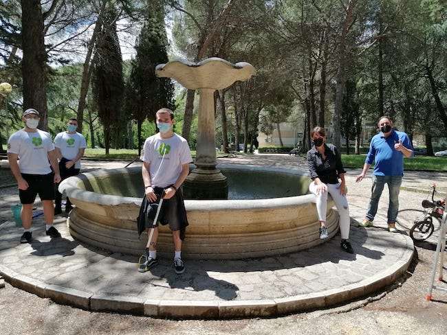 In foto la fontana dei Giardini pubblici di Jesi, da sx verso dx: Jacopo Montori, Jacopo Bartolucci,Giacomo Mosca, Selena Abatelli e Matteo Montesi
