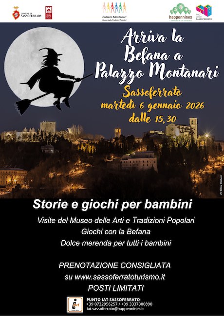 Martedì 6 gennaio torna la Befana a Sassoferrato all’interno dello storico Palazzo Montanari: i bambini saranno coinvolti in un’esperienza immersiva alla scoperta della vita quotidiana di un tempo