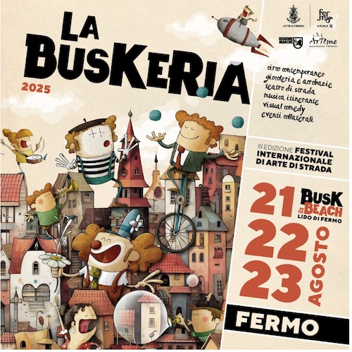 FERMO – Dopo il grande successo delle prime due edizioni, che hanno richiamato migliaia di spettatori tra piazze, cortili e vicoli del centro storico, dal 21 al 23 agosto 2025 torna a Fermo La Buskeria, festival internazionale dell’arte di strada e del circo contemporaneo, promosso dal Comune di Fermo e diretto da Giuseppe Nuciari.