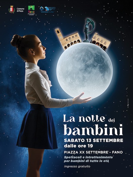 FANO – Sabato 13 settembre 2025 l’assessorato alla Città dei Bambini e delle Bambine del Comune di Fano e il Comitato Unpli Pesaro Urbino organizzano La notte dei bambini, evento con intrattenimento spettacoli e momenti dedicati alla cultura, pensata per i bambini e per tutta la famiglia. Il centro storico sarà animato da spettacoli diffusi che trasformeranno piazza XX Settembre, la Mediateca Montanari e il Museo del Palazzo Malatestiano in luoghi per divertirsi.