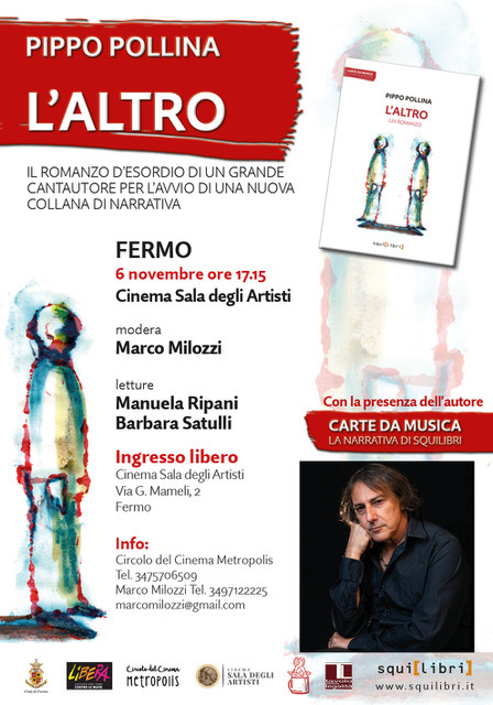 MARCHE – Doppio appuntamento nelle Marche per Pippo Pollina che il 6 novembre a Fermo e il 7 ad Ancona, incontrerà i lettori del suo primo romanzo, “L’altro”, che, con oltre quindicimila copie vendute in Germania, alla seconda edizione in Italia e diverse traduzioni in altre lingue, continua a suscitare grande interesse per gli argomenti affrontati ma anche per una scrittura, è stato detto, “agile e imprevedibile, quasi cinematografica” e con una “spudorata capacità di coinvolgere il lettore”, accompagnandolo alla scoperta di una Sicilia profondamente civile, la stessa che il cantautore siciliano ha conosciuto in giovinezza e che si è portato dietro come un tesoro in questi decenni in giro per l’Europa.
