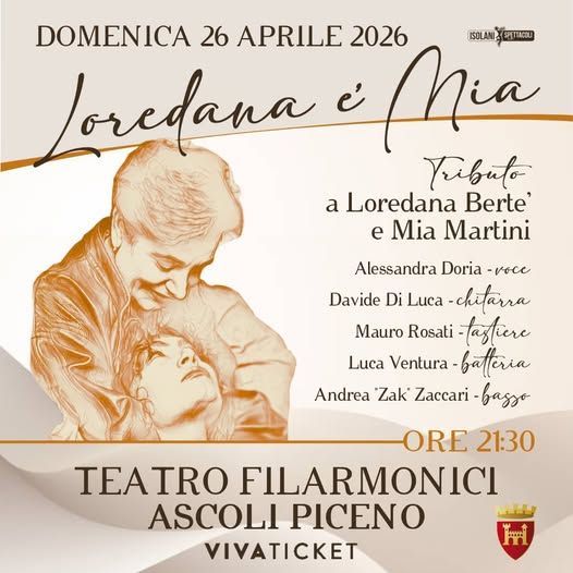 ASCOLI PICENO – Domenica 26 aprile 2026, alle ore 21.30, il Teatro Filarmonici di Ascoli Piceno ospiterà “Loredana è Mia”: uno spettacolo intenso, coinvolgente, con testi e melodie senza tempo.