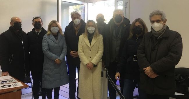 Questa mattina, il sindaco Sandro Parcaroli, ha effettuato un sopralluogo in loco prima dell’apertura del nuovo punto tamponi. Presenti anche gli assessori Francesca D’Alessandro, Oriana Piccioni, Laura Laviano e Paolo Renna, il presidente Apm Gianluca Micucci Cecchi e il consigliere Claudio Gigli, il presidente dell’Ircr Giuliano Centioni e il direttore Francesco Prioglio e il consigliere comunale delegato alla Sanità del Comune, il dottor Giordano Ripa.