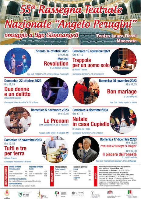 MACERATA – Domenica 5 novembre, alle 17.15, al Teatro Lauro Rossi di Macerata, terzo appuntamento della 54^ Rassegna Teatrale Nazionale “Angelo Perugini” con uno spettacolo planetario visto il successo che questo testo di Matthieu Delaporte e Alexandre de la Patellière ha avuto nei teatri di tutto il mondo. Il film che ha seguito la piéce teatrale ha sbancato i botteghini sia in Francia che nel resto d’Europa.