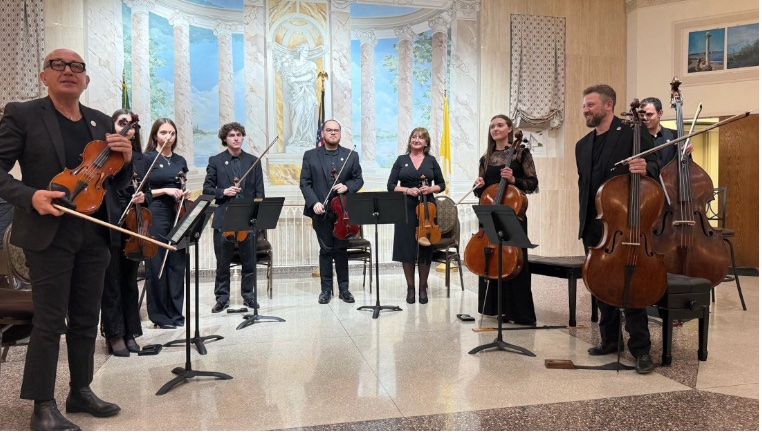 L’esecuzione è affidata all’Orchestra da Camera del Conservatorio “G.B. Pergolesi” di Fermo, guidata dal M° Luca Marziali (violino concertatore), che ha seguito il lavoro orchestrale con gli studenti fin dalle prime fasi. Le due giovani soliste, il soprano Alessia Di Quirico e il mezzosoprano Tian Qianyi, sono state preparate dal M° Andrea Concetti.