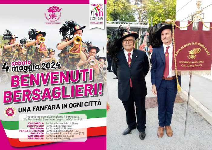 MACERATA – Domani, sabato 4 maggio 2024, 10 storiche Fanfare dei Bersaglieri provenienti da tutt’Italia si esibiranno a Macerata e in altri comuni della provincia.