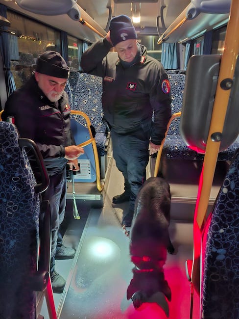 Durante l’attività, il cane antidroga ha permesso di rinvenire quattro frammenti e due spinelli confezionati, per un totale di 4 grammi di hashish. La sostanza, verosimilmente gettata a terra dai possessori alla vista dei militari, è stata sottoposta a sequestro a carico di ignoti e sarà successivamente distrutta.