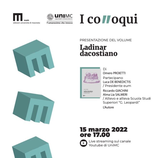 L’evento, nell’ambito di Colloqui eum, si terrà martedì 15 marzo in diretta sui social dell’Università di Macerata