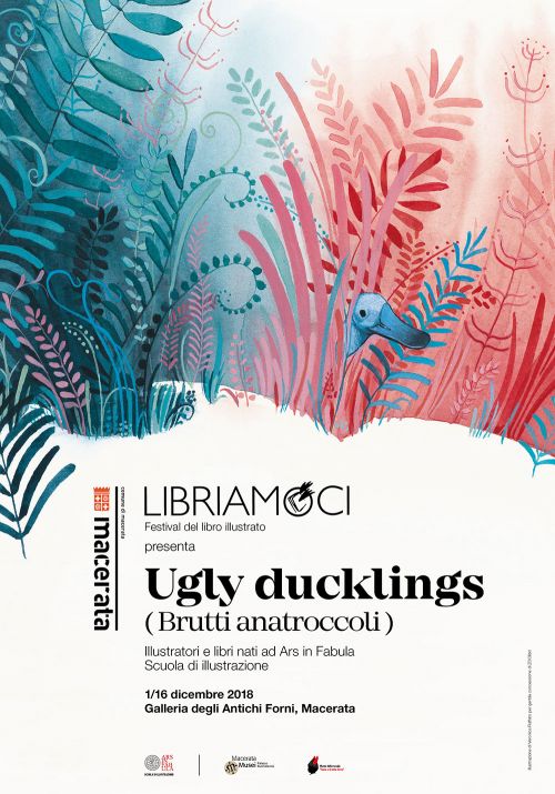 Libriamoci 2018 si intitola “Brutti anatroccoli” e l’immagine è proprio “Il brutto anatroccolo” della famosa fiaba, ultimo nato a Macerata sui banchi della scuola di illustrazione Ars in Fabula. Il brutto anatroccolo si è ora trasformato, come nel racconto di Andersen, in un meraviglioso cigno di nome Veronica Ruffato, la diplomata al Master Ars in Fabula autrice delle illustrazioni in mostra. Una nuova versione di una delle storie classiche più amate di sempre, un bellissimo albo uscito recentemente per la casa editrice ZOOlibri e tra i protagonisti dell’edizione 2018 della mostra illustratori di Libriamoci festival internazionale del libro illustrato.