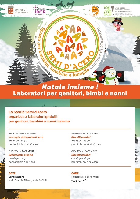 MACERATA – Si arricchisce il programma di iniziative di Semi d’Acero, lo spazio per bambini e famiglie realizzato dal Comune insieme all’IRCR nell’ambito del progetto QUIsSI CRESCE! e sostenuto da “Con i Bambini” nell’ambito del fondo per il contrasto della povertà educativa minorile.