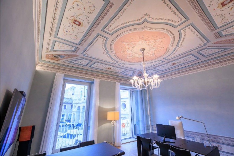 risorgimentali e della carboneria hanno ospitato una delle tipografie più importanti della città. Palazzo Cortesi vanta al suo interno degli splendidi soffitti decorati, un’importante documentazione fotografica ricavata all’interno della canna fumaria durante il restauro e altri riferimenti storici altrettanto interessanti.