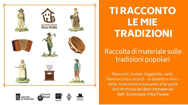 MACERATA – Raccogliere, documentare e condividere le tradizioni orali, scritte, musicali, gli usi e costumi tipici del territorio, attraverso oggetti e documenti. E’ questo l’obiettivo del progetto Raccontami le tue tradizioni messo in campo dall’Ecomuseo delle case di terra di Villa Ficana e rivolto ai cittadini che con i loro contributi potranno partecipare all’arricchimento dell’Archivio dei Beni Immateriali del museo.