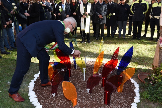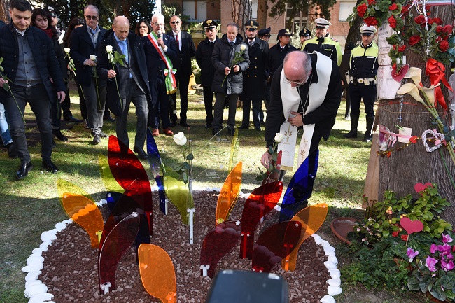 Prima della benedizione il vescovo Nazzareno Marconi ha sottolineato la caratteristica del messaggio cristiano che non si arrende al male ma da esso trae il bene “Da questo grande male ” ha affermato monsignor Marconi “è uscita con forza la voglia di difendere i deboli, i più fragili. Ogni vita debole e fragile è bella e va difesa. Questi fiori sono vivi e ce lo testimoniano”.