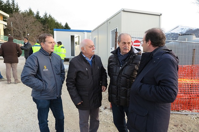 L’ing. Soccodato, l’ing. Franciscis ed atri tecnici responsabili dei diversi cantieri si sono quindi spostati sulla Provinciale Pian di Pieca – Monastero – Fiastra dove è stato accertato l’avanzato stato dei lavori.