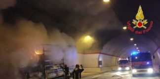 Serravalle di Chienti, a fuoco un autocarro nella galleria Bavareto [FOTO]