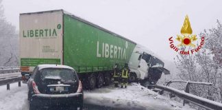 BELFORTE DEL CHIENTI (MACERATA) - Un autoarticolato senza catene montate, in transito sulla SS 77, si è intraversato, forse...