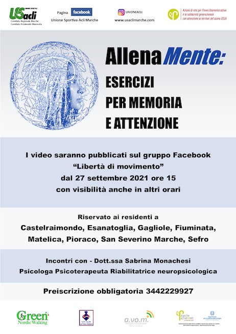 Al Progetto di prevenzione, finalizzato a tenere attiva la mente attraverso esercizi per la memoria e l’attenzione, possono partecipare cittadini residenti nel territorio dei comuni di Castelraimondo, Esanatoglia, Fiuminata, Gagliole, Matelica Pioraco, San Severino Marche e Sefro