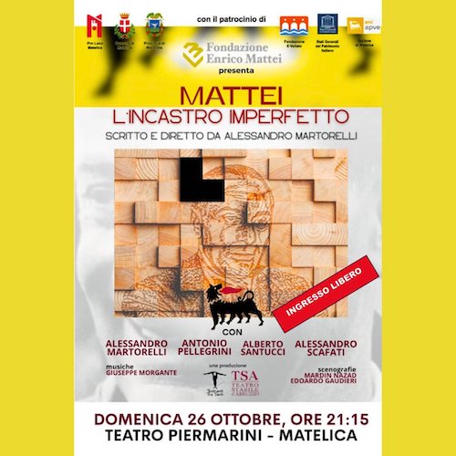 Il 26 ottobre, al Teatro Piermarini, la Fondazione Mattei di Matelica presenta “Mattei: l’incastro imperfetto”, spettacolo teatrale dedicato alla figura di Enrico Mattei