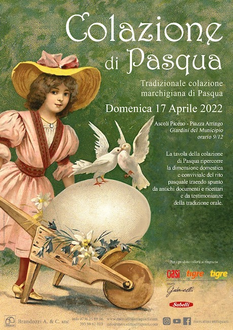 Come ormai tradizione, domenica 17 Aprile dalle 9 alle 12 presso i Giardini del Palazzo Comunale in Piazza Arringo torna la “Colazione di Pasqua“, tipica colazione marchigiana dei giorni di Pasqua. In un’atmosfera di convivialità e di festa, il pubblico potrà degustare i cibi tipici della mensa pasquale: pizza di formaggio, piconi, salame, frittata con le erbette, uova sode.