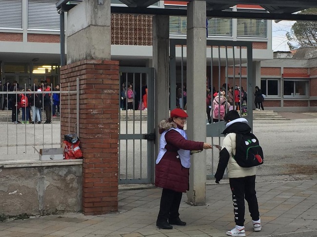 Infatti sabato mattina erano presenti, prima del suono della campanella, all’ingresso dell’Istituto Comprensivo “Lucatelli” in Viale Giovanni Benadducci di Tolentino, in provincia di Macerata.