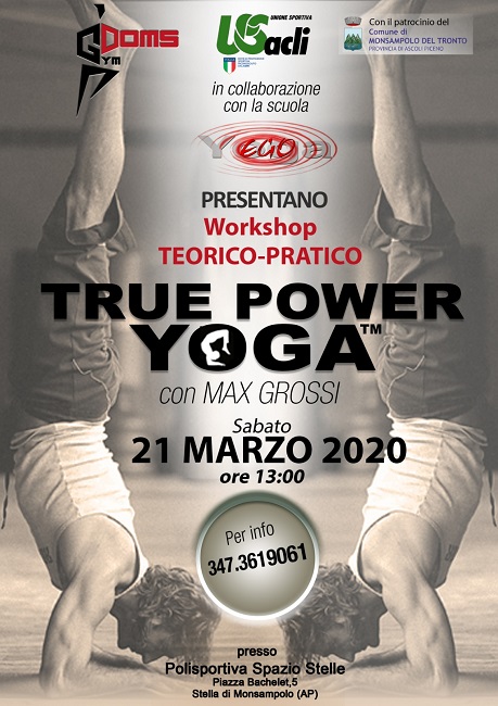 MONSAMPOLO DEL TRONTO (AP) – Sono già aperte le iscrizioni al “True Power Yoga Workshop” che si svolgerà Sabato 21 marzo alle ore 13 in Piazza Bachelet 5.