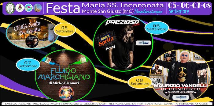 Sabato 6 e lunedì 8 settembre appuntamenti da non perdere a Monte San Giusto in occasione della festa di Maria SS.Incoronata, promossa dalla Pro Loco