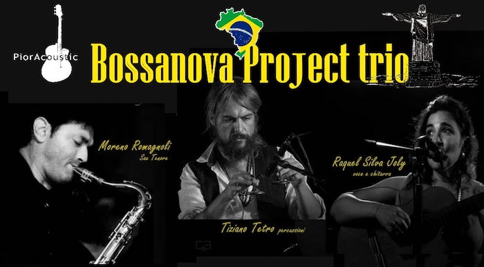 I migliori successi della musica brasiliana e della bossa nova rivisitati in chiave personale e acustica, ove l’interscambio tra dolci e soavi armonie della chitarra unite alla voce lirica e sensuale di Raquel Silva Joly incontrano il romantico e raffinato fraseggio del Sax di Moreno Romagnoli, mentre le percussioni di Tiziano Tetro supporteranno ritmicamente ogni singola sfumatura creando un sound di gran classe, un’atmosfera unica mista ad attimi di pura poesia