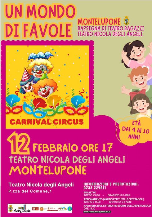 Giovedì 12 febbraio, sul palco del Teatro Nicola Degli Angeli, per la rassegna “Un mondo di favole”, il Carnival Circus per la gioia dei più piccoli