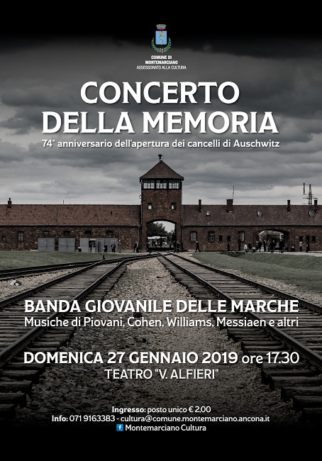 MONTEMARCIANO (AN) – Oggi,domenica 27 gennaio, alle ore 17.30, presso il Teatro “V. Alfieri” si terrà il concerto della Banda Giovanile delle Marche, diretta dal Maestro Andrea Greganti, per la commemorazione del Giorno della Memoria.