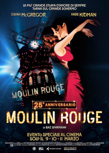 MARCHE – Moulin Rouge!, il visionario film diretto da Baz Luhrmann (Romeo + Giulietta di William Shakespeare, Australia, Il grande Gatsby ed Elvis) tornerà al cinema da oggi, 9 all’11 marzo 2026. Uscito nel 2001 e interpretato da Nicole Kidman ed Ewan McGregor, Moulin Rouge! è molto più di un musical: è un’opera-manifesto che ha ridefinito il genere, fondendo in modo audace immaginario pop, montaggio ipercinetico e rivisitazioni musicali che attraversano epoche e stili. L’elenco delle sale è disponibile su nexostudios.it.