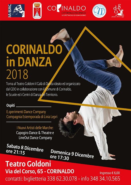 Torna al Teatro Goldoni sabato 8 e domenica 9 dicembre 2018 Corinaldo in Danza 2018, il Galà di Danza ideato e organizzato dal GDO di Patrizia Salvatori in collaborazione con il Comune di Corinaldo, il Ministero dei beni, delle attività culturali e del turismo e le scuole e i centri di danza del territorio. Corinaldo in danza 2018, al suo quarto anno di presentazione, è un’iniziativa concertata con il Comune di Corinaldo nell’attuazione di un progetto che vuole il coinvolgimento attivo delle scuole e dei centri di danza del territorio della provincia di Ancona e limitrofi. Un’occasione di incontro e scambio di esperienze tra il professionismo e il mondo della formazione.