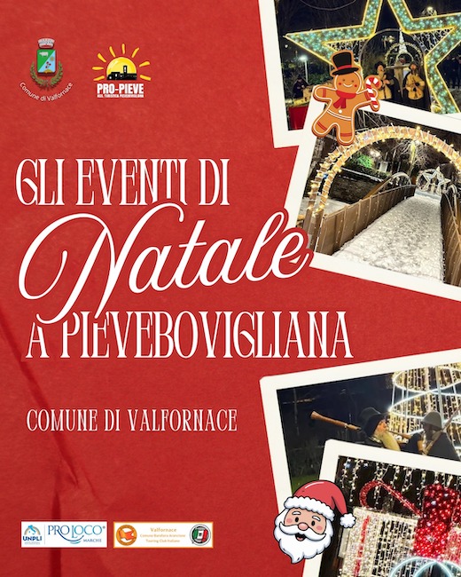 VALFORNACE (MC) – Il Comune di Valfornace, in collaborazione con la Pro Pieve e le associazioni locali, ha presentato un ricco calendario di eventi che animeranno il territorio per le festività di Natale e inizio anno nuovo. Un mix di tradizione, spettacoli e momenti conviviali pensato per coinvolgere tutta la cittadinanza.