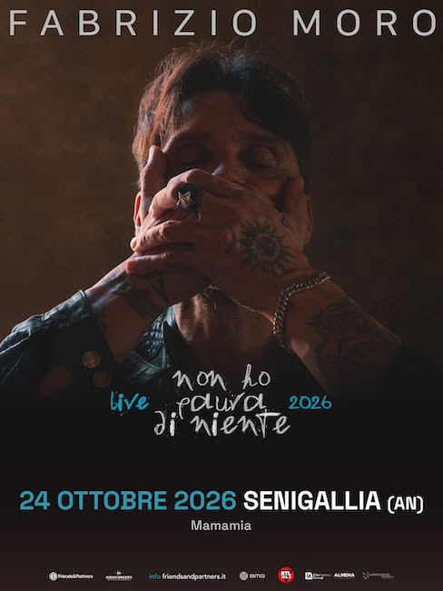 SENIGALLIA – “Non ho paura di niente Live 2026” il tour di Fabrizio Moro, che ha preso il via con un’anteprima il 2 maggio al Palazzo dello Sport di Roma, farà tappa anche al Mamamia di Senigallia il 24 ottobre alle 22.00. Concerto organizzato da Elite Agency Group, Alhena Entertainment e Universal Events.