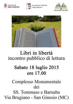 ‘Libri in libertà’ a San Ginesio sabato 18 luglio