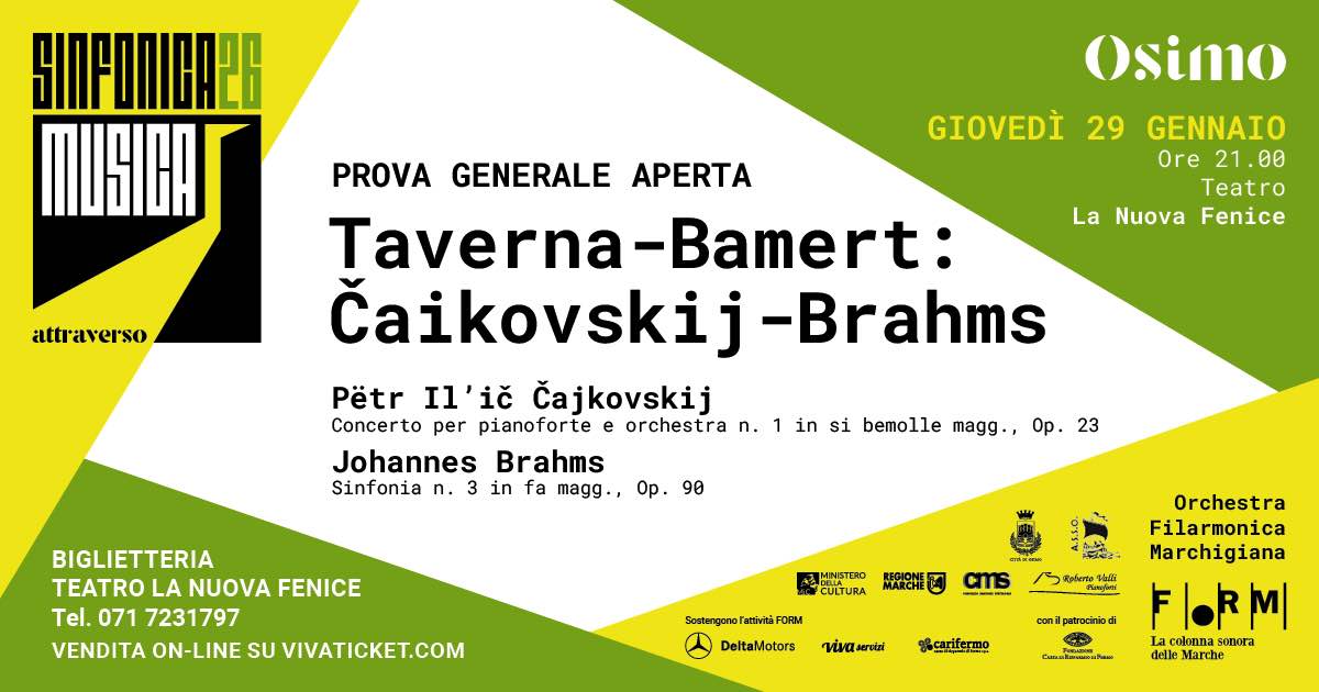 Giovedì 29 gennaio, il Teatro La Nuova Fenice di Osimo apre le porte per la prova generale dell’Orchestra Filarmonica Marchigiana.Taverna e Bamert svelano i segreti di Čaikovskij e Brahms