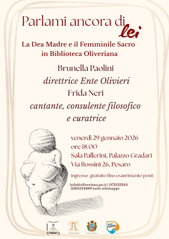 A questi e altri interrogativi si cercherà di dare risposta nel corso dell’incontro Parlami ancora di Lei. La Dea Madre e il femminile Sacro in Biblioteca Oliveriana,