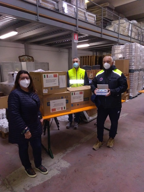 Le protezioni individuali sono state consegnate alla Protezione Civile comunale, pronte per essere distribuite alle persone in difficoltà