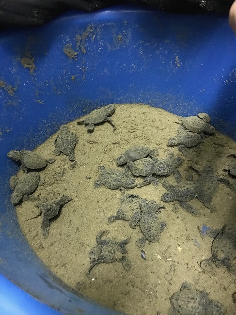Ieri mattina lo staff della Fondazione Cetacea con l’onnipresente presidente Sauro Pari ha constatato la necessità di dover intervenire a causa del maltempo che imperversava su Baia Flaminia scoprendo la presenza di una trentina di tartarughe pronte ad emergere, di altre non ancora completamente uscite dal guscio e di un discreto quantitativo di uova chiuse.