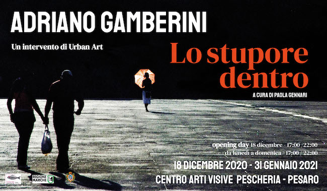 “Adriano Gamberini – lo stupore dentro” è una novità assoluta, progettata in risposta alle normative anti Covid: una fotoinstallazione del fotografo marchigiano, a cura di Paola Gennari, completamente fruibile in sicurezza passando per via Cavour, grazie ad un allestimento innovativo che si ispira alle suggestioni della street e della urban art.