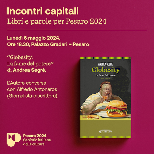 PESARO – Domani, lunedì 6 maggio 2024, alle ore 18.30, a Palazzo Gradari a Pesaro, Andrea Segrè, ospite di ‘Incontri capitali’ , presenterà ‘Globesity. La fame del potere’ (Edizioni Minerva) il suo romanzo d’esordio, thriller alimentare sospeso tra realtà e immaginazione. L’autore converserà con il giornalista e scrittore Alfredo Antonaros.
