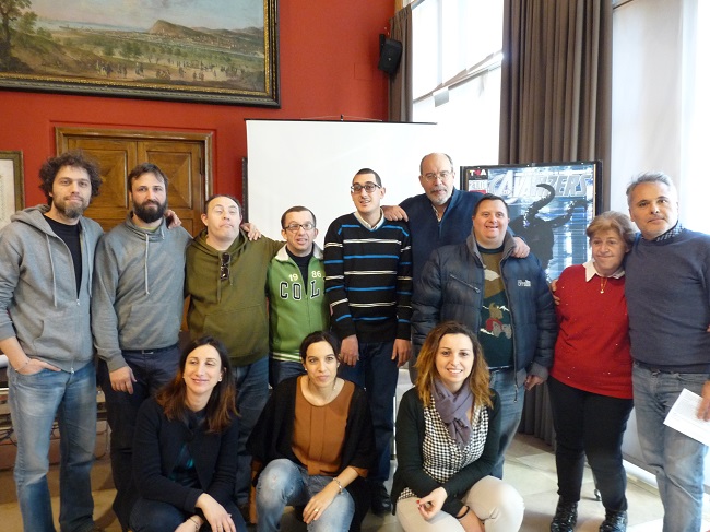 Alla conferenza stampa erano presenti gli attori, gli educatori, l’assessore alla Solidarietà Sara Mengucci e il coordinatore del’Ats n.1 Roberto Drago