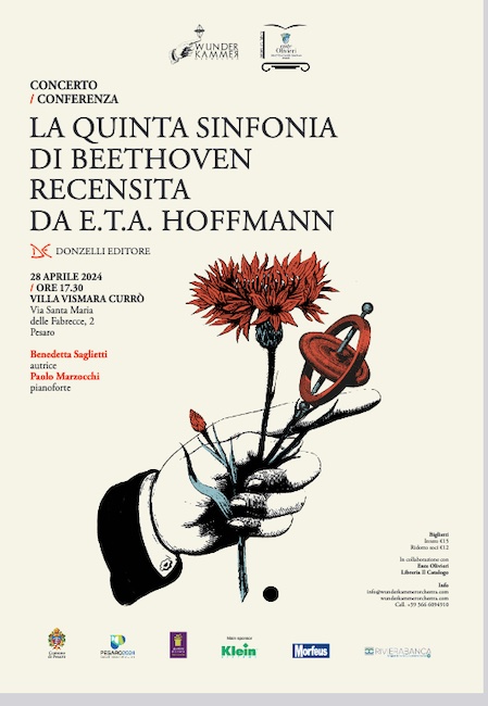La storia di questa recensione e di come cambiò la storia della musica è al centro dell’opera della storica della musica Benedetta Saglietti “ La quinta sinfonia di Beethoven recensita da E. T. A. Hoffmann” (Donzelli Editore), che verrà presentata dall’autrice stessa domenica 28 aprile alle 17.30 nella suggestiva cornice di Villa Vismara Currò (via Santa Maria delle Fabrecce 2, Pesaro) nel corso dell’evento organizzato dall’associazione WunderKammer Orchestra Pesaro in collaborazione con Ente Olivieri – Biblioteca e Musei Oliveriani e Libreria Il Catalogo di Pesaro.