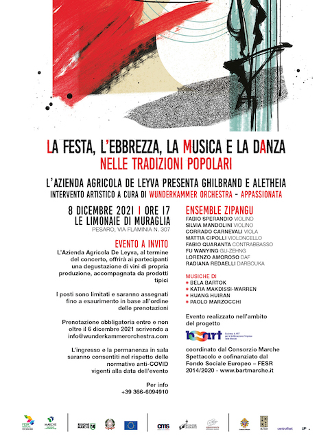 Nell’ambito del progetto B.ART Marche, l’8 dicembre il concerto dal titolo “La Festa, l’Ebbrezza, La Musica e la Danza nelle tradizioni popolari”.Intervento artistico a cura di WKO e Appassionata. Ingresso libero a invito
