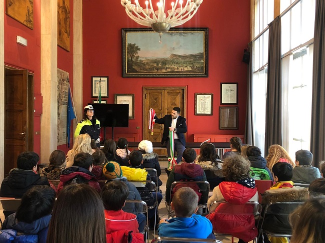 Un evento pensato all’interno del progetto di educazione stradale portato avanti dalla Polizia Locale, che hanno accompagnato gli alunni nel tragitto scuola-aula consiliare.