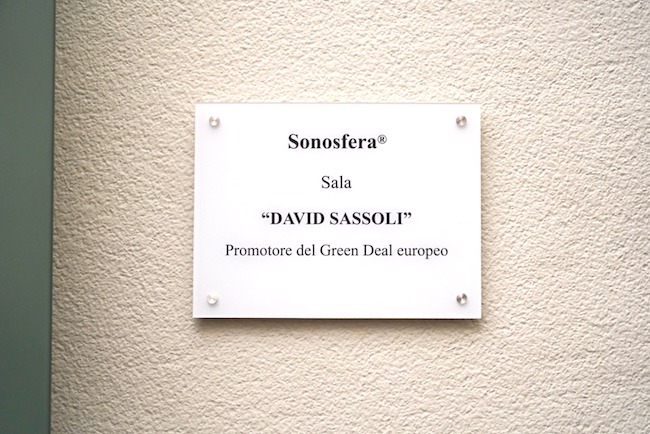 La sala titolata a Sassoli, ospita il “teatro per l’ascolto profondo di ecosistemi e musica”, progetto del professor David Monacchi, docente del Conservatorio Rossini: «È un grande onore per la città e per questo luogo portare il nome di David Sassoli che è riuscito a comprendere ed entrare nel profondo di questo luogo tramite la sua grande sensibilità per l’arte, il suono e il linguaggio interdisciplinare che in questo caso contiene un aspetto umano molto forte». «Aver iniziato il cammino della Sonosfera® negli stessi giorni in cui è iniziata l’esperienza del Green Deal europeo che tanto deve a Sassoli è una combinazione particolarmente sincrona che ci onora e spinge a proseguire in questo percorso di ricerca e impegno».