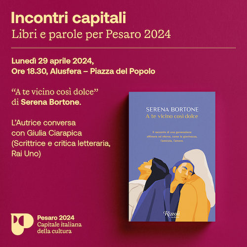 PESARO – Una storia d’amore e d’amicizia in quella stagione della vita nella quale i sentimenti sembrano prevalere su tutto: lunedì 29 aprile, a ‘Incontri capitali’ di Pesaro 2024, Serena Bortone giornalista, autrice e conduttrice televisiva presenterà il suo romanzo d’esordio ‘A te vicino così dolce’ (Rizzoli) in dialogo con la scrittrice e critica letteraria Giulia Ciarapica (piazza del Popolo, ore 18.30; ingresso dal retro del palco).