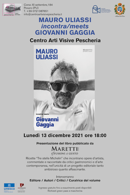PESARO – Lunedì 13 dicembre 2021, alle ore 18.00, il Centro Arti Visive Pescheria accoglie la presentazione della pubblicazione MAURO ULIASSI incontra/meets Giovanni Gaggia, pubblicato da Maretti Editore-collana ‘Effusioni di gusto’. Un incontro ‘speciale’, promosso dalla Fondazione Pescheria Centro Arti Visive in collaborazione con il Comune di Pesaro/Assessorato alla Bellezza e la Mostra Internazionale del Nuovo Cinema di Pesaro.
