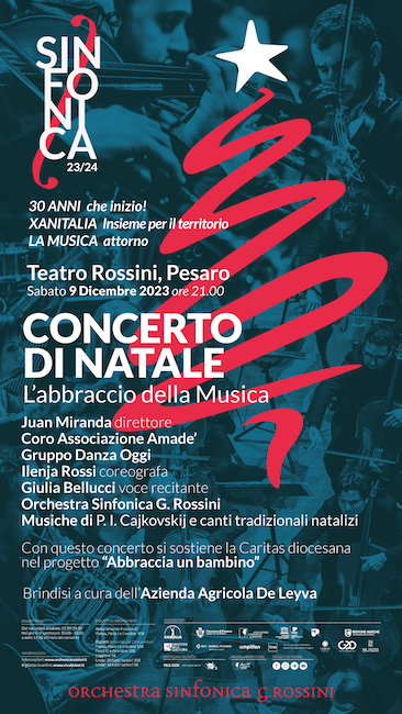 Sabato 9 dicembre, al Teatro Rossini, il primo concerto della Stagione Sinfonica 2023/24 è dedicato al Natale e ai più piccoli; è un evento di beneficenza a favore della Caritas diocesana. In programma Musiche di P. I. Cajkovskij e canti tradizionali natalizi